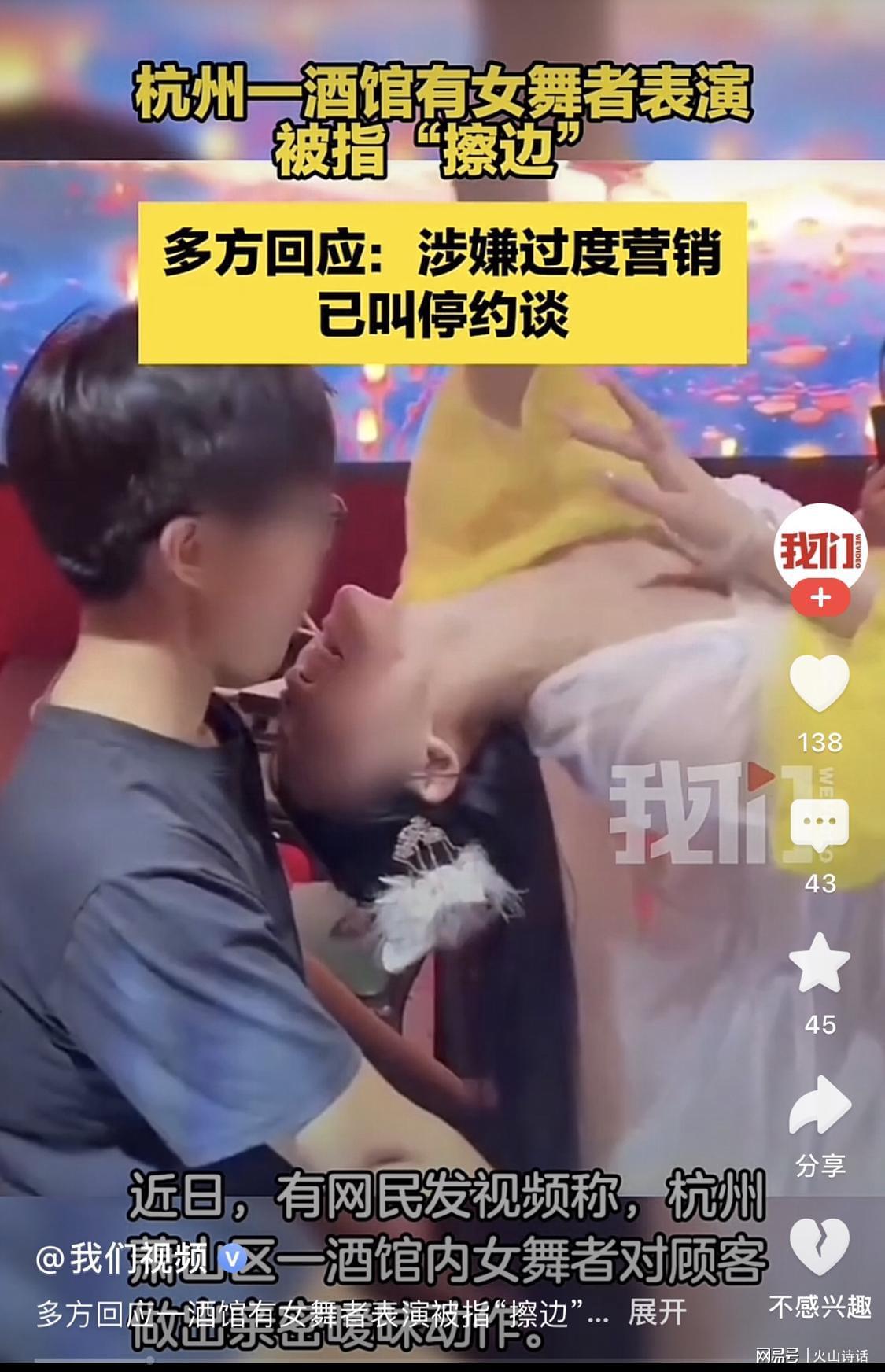 另据媒体报道,近日,有网民发视频称,杭州萧山区一酒馆内女舞者对顾客做出亲密暧昧动作。